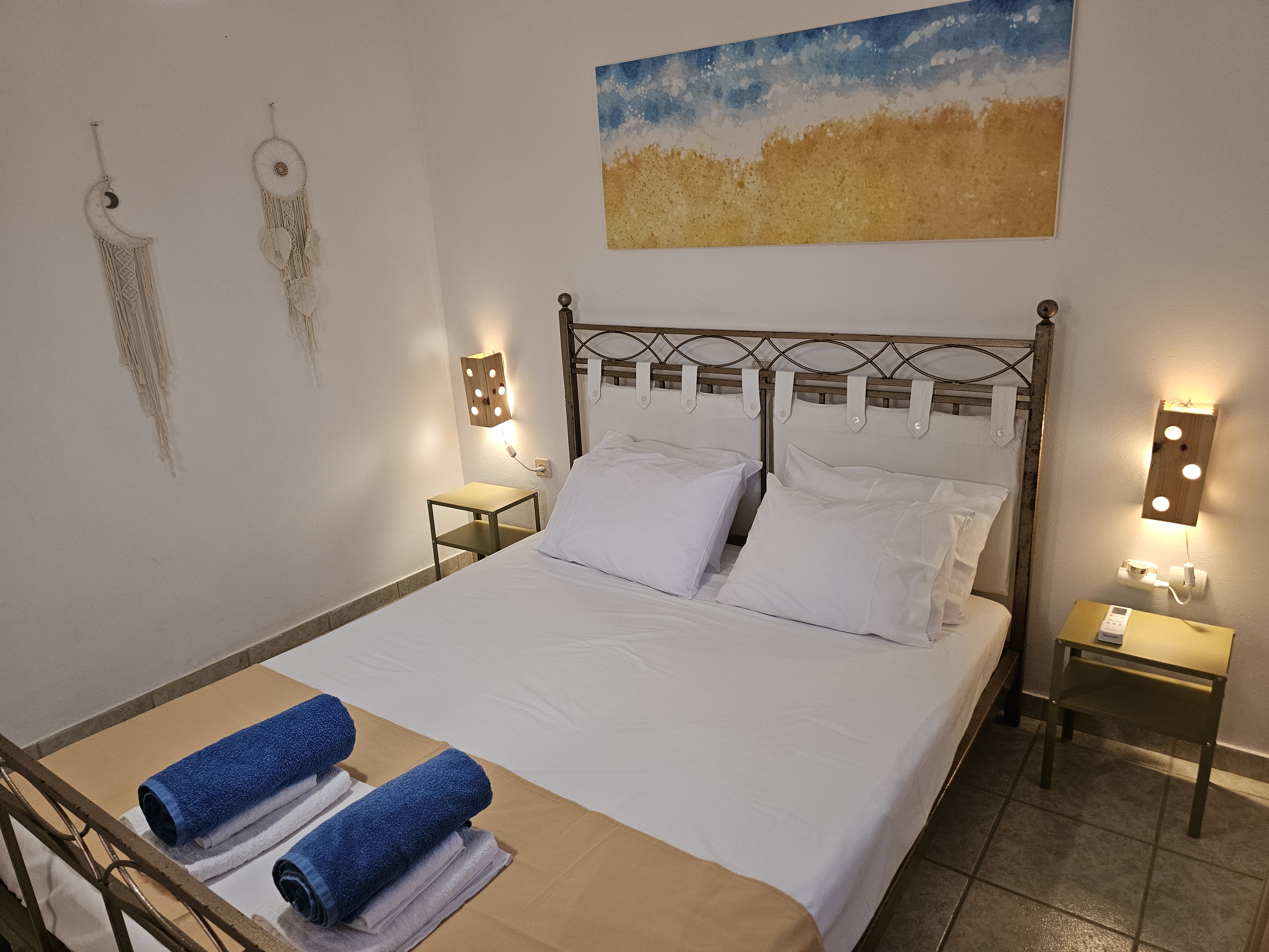 Ammos reflects the gentle and welcoming feel of sand. With earthy tones and natural elements in the decor, Ammos offers a cozy and warm space to relax and feel right at home, providing guests with a tranquil retreat to unwind and rejuvenate.