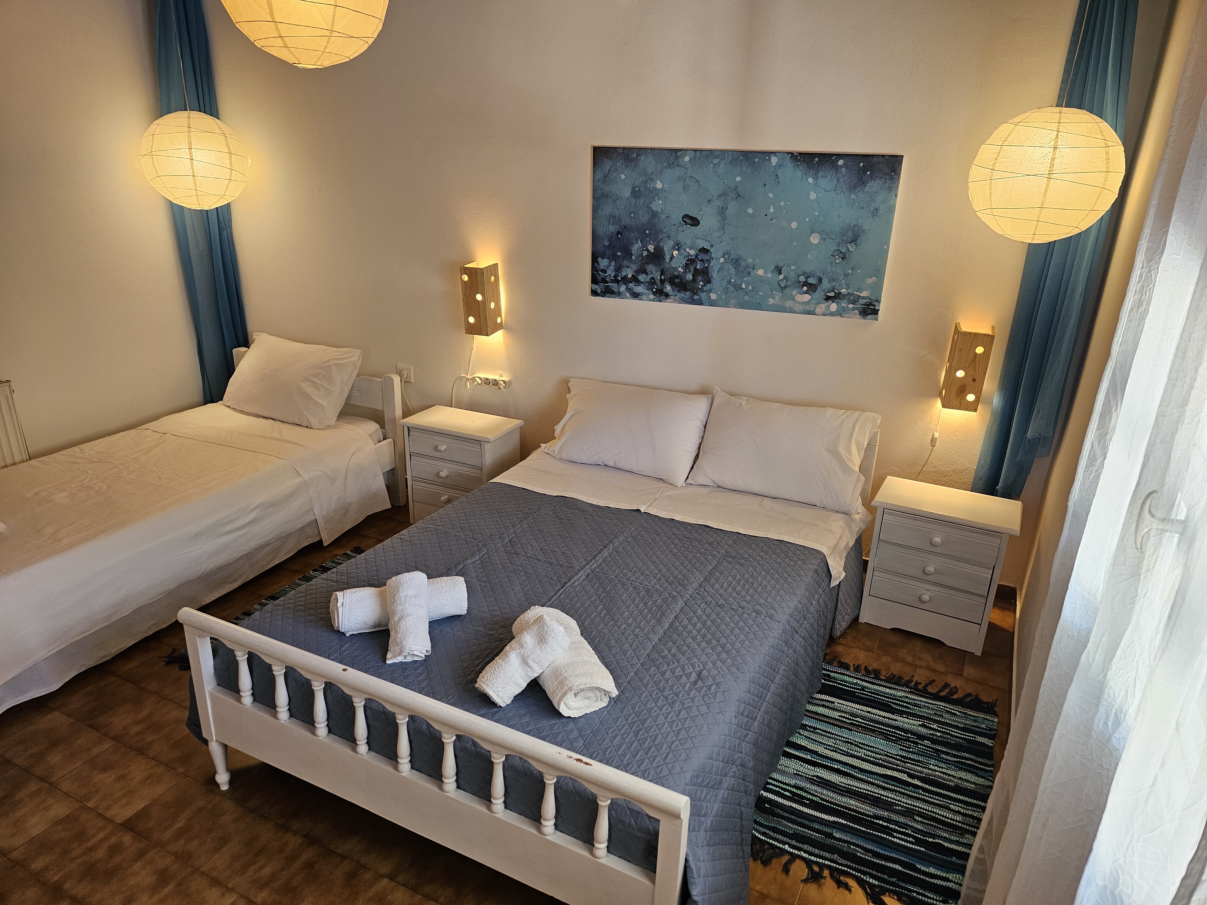 Ammos reflects the gentle and welcoming feel of sand. With earthy tones and natural elements in the decor, Ammos offers a cozy and warm space to relax and feel right at home, providing guests with a tranquil retreat to unwind and rejuvenate.